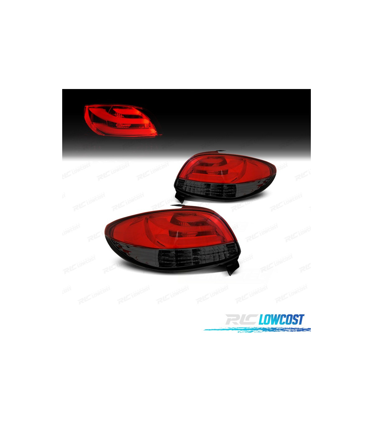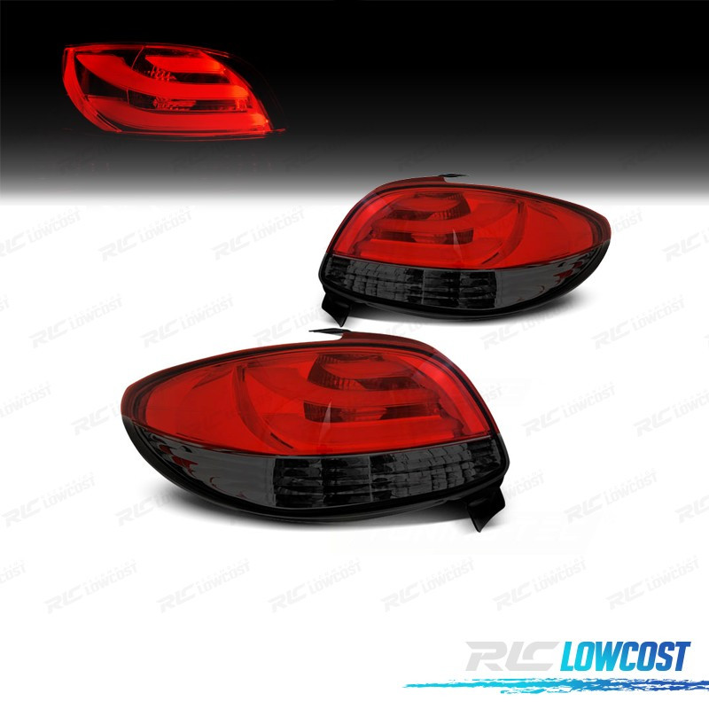 FANALI PEUGEOT 206 98-09 LIGHT BAR ROSSO AFFUMICATO