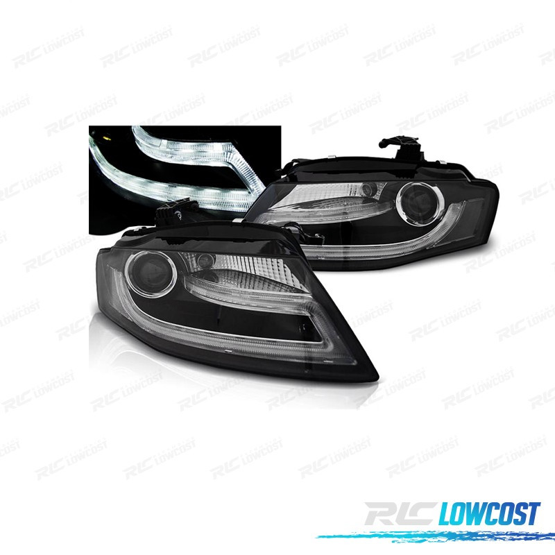 FARI AUDI A4 B8 07-11 LUCE DIURNA LED DRL SFONDO NERO