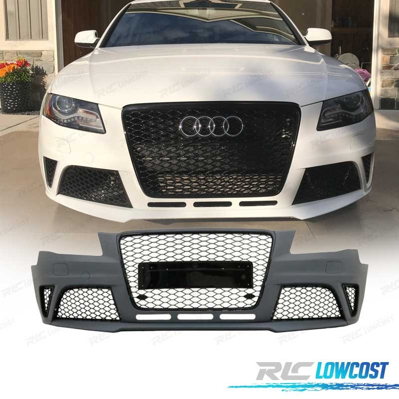 PARAURTI ANTERIORE PER AUDI A4 B8 08-11 LOOK RS4 GRIGLIA NERA CON SENSORI DI PARCHEGGIO