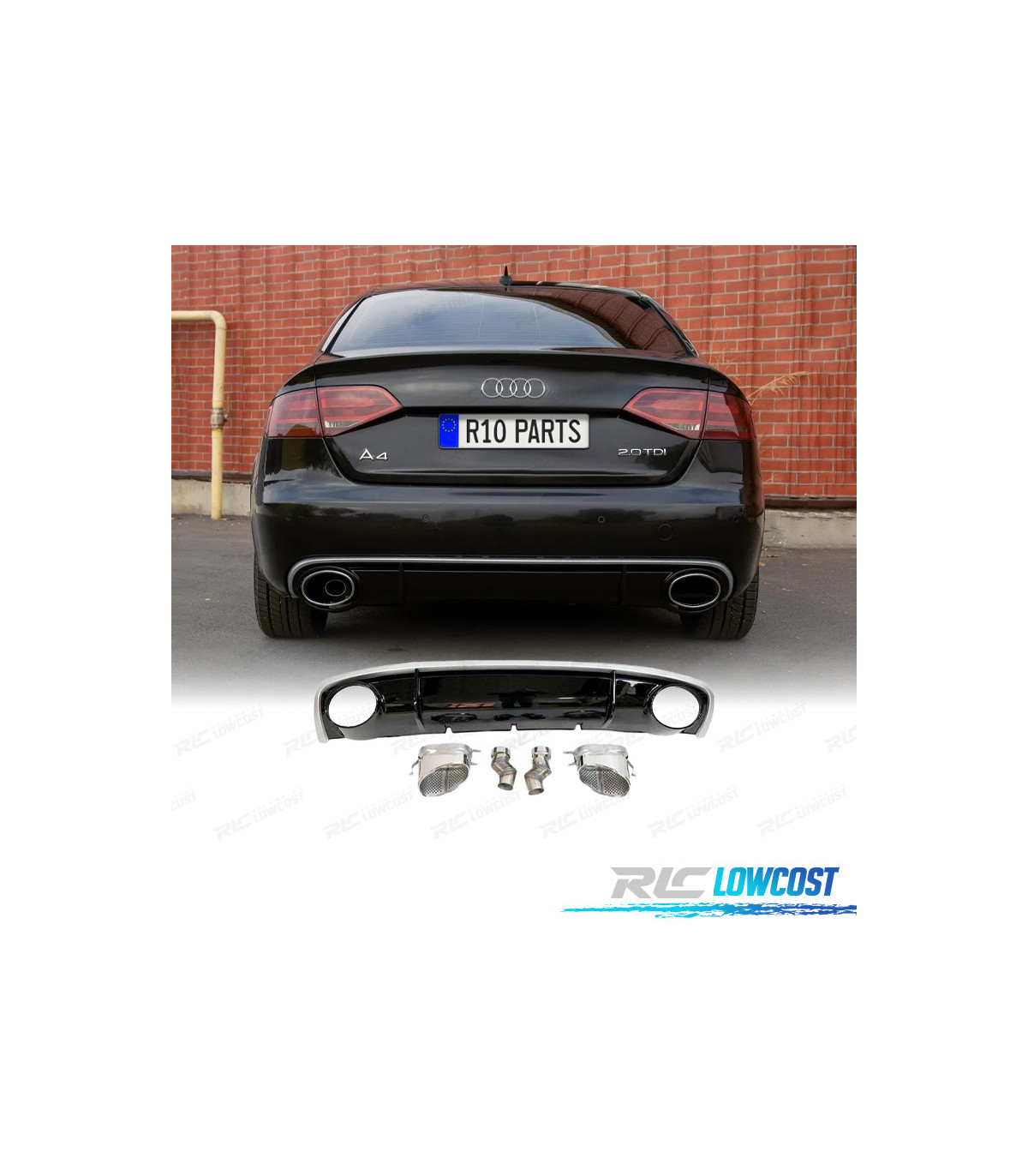 DIFFUSORE AUDI A4 B8 11-15 LOOK RS4 DOPPIA USCITA