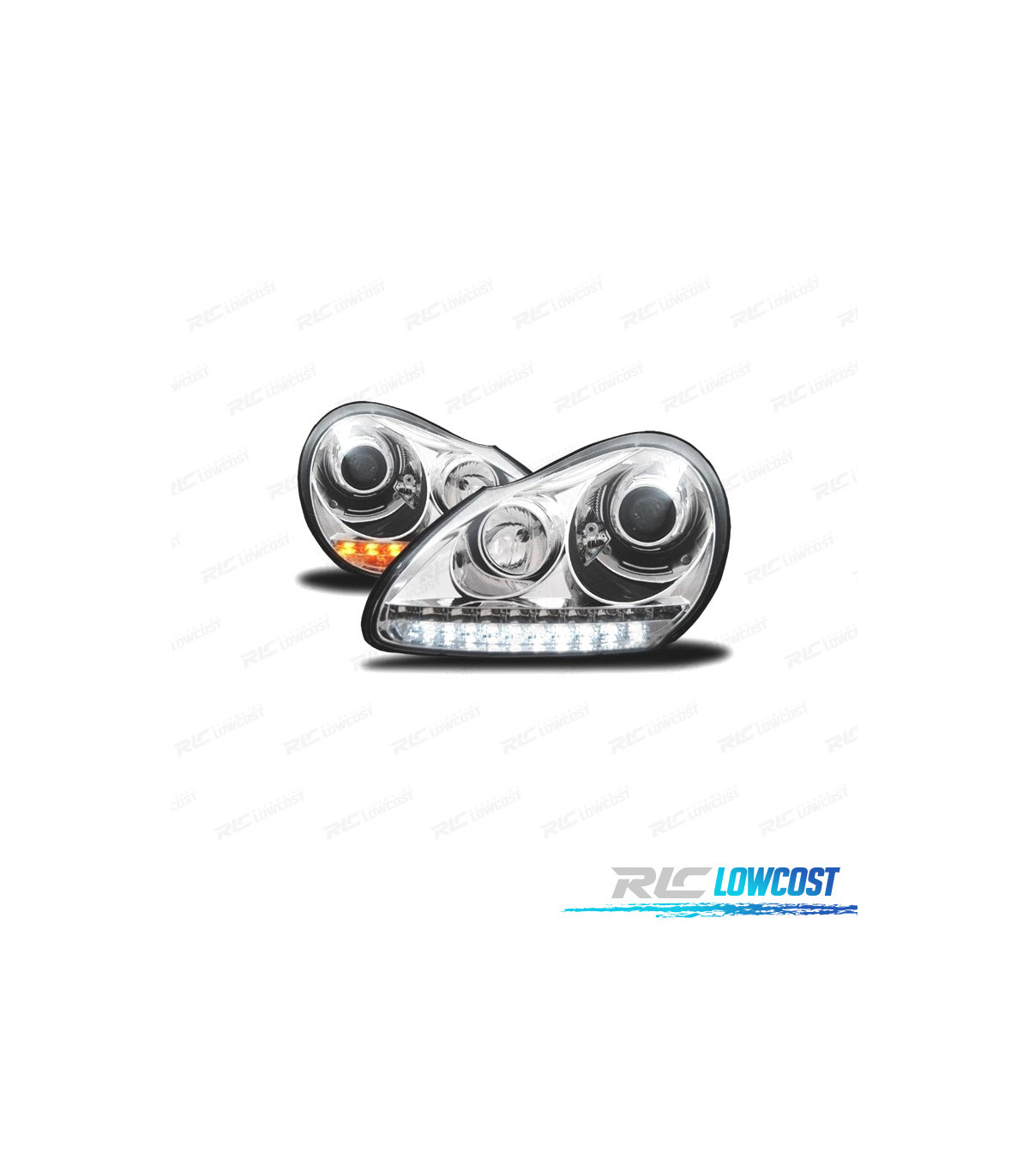 FARI PORSCHE CAYENNE 03-07 LUCE DIURNA XENON FONDO CROMATO