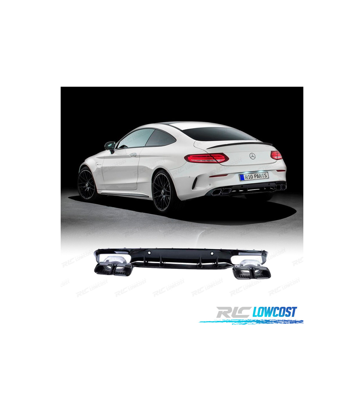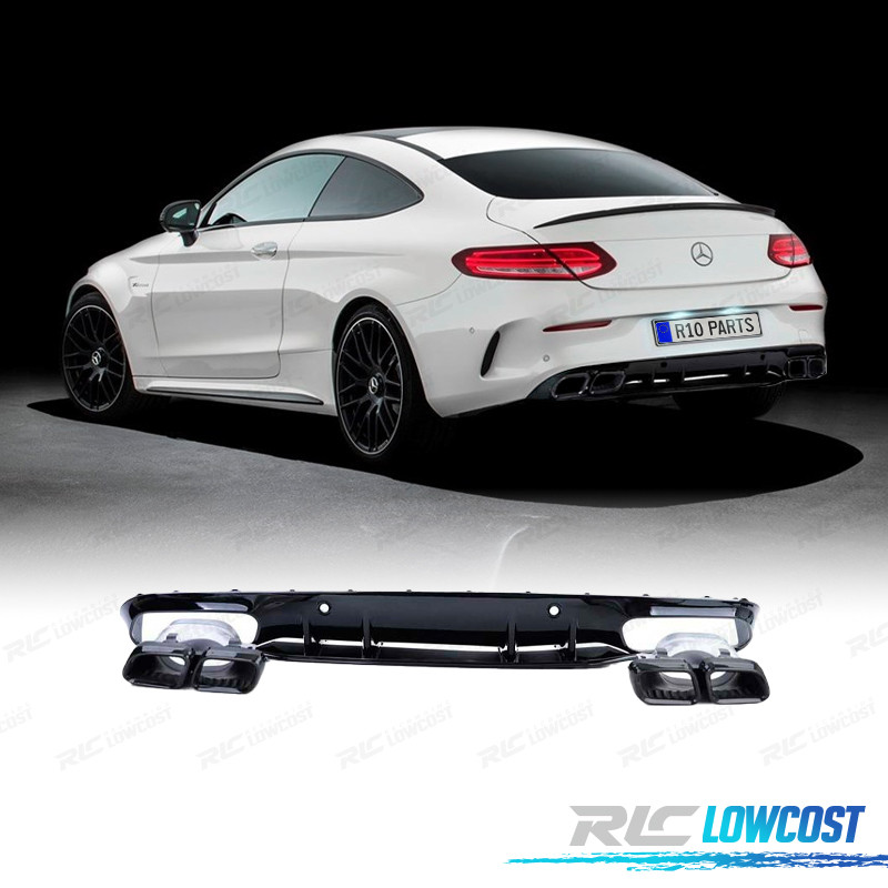 DIFFUSORE MERCEDES CLASSE C C205 COUPÉ 15-18 LOOK AMG C63 NERO LUCIDO + TERMINALI DI SCARICO NERO