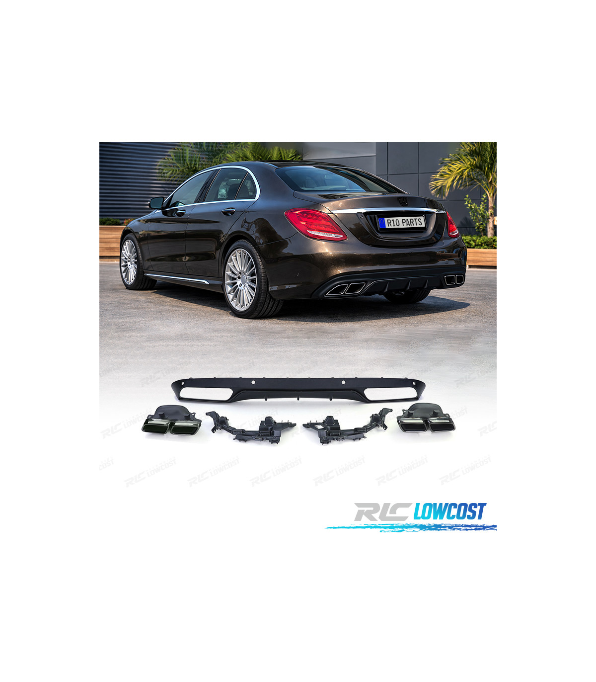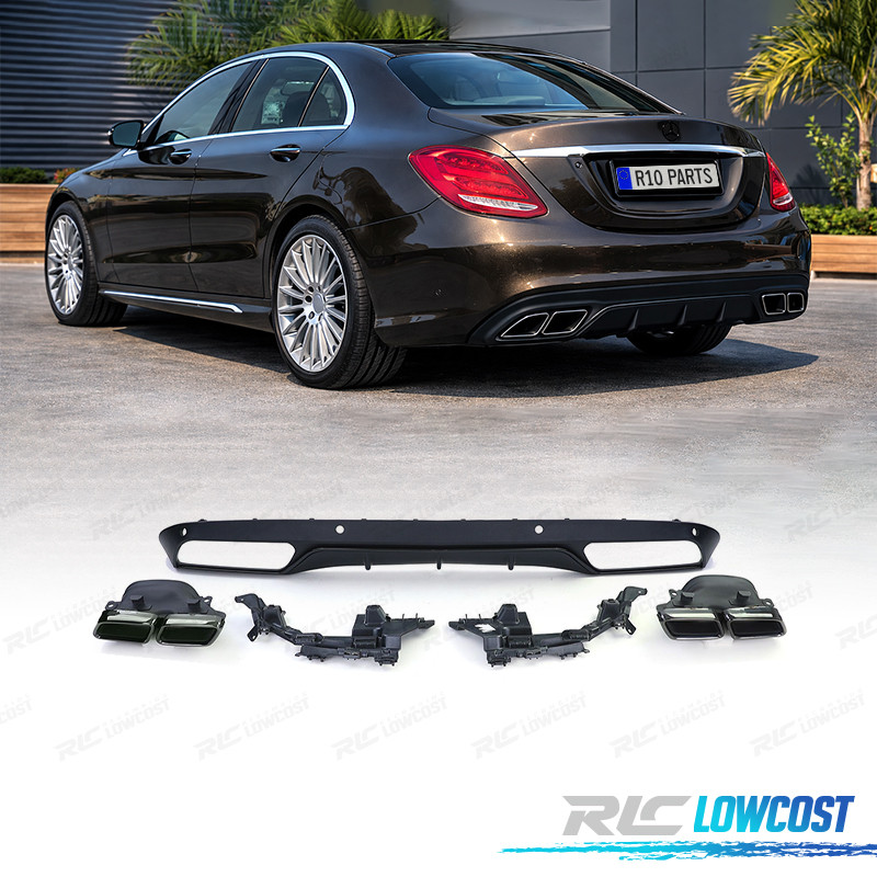 DIFFUSORE MERCEDES CLASSE C W205 SEDAN 14-18 LOOK AMG NERO OPACO + TERMINALI DI SCARICO