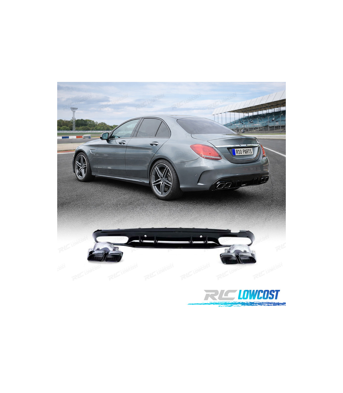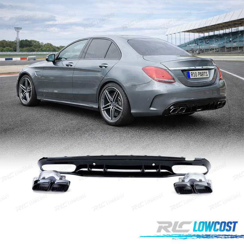 DIFFUSORE MERCEDES CLASSE C W205 SEDAN 18-21 LOOK AMG NERO LUCIDO + TERMINALI DI SCARICO