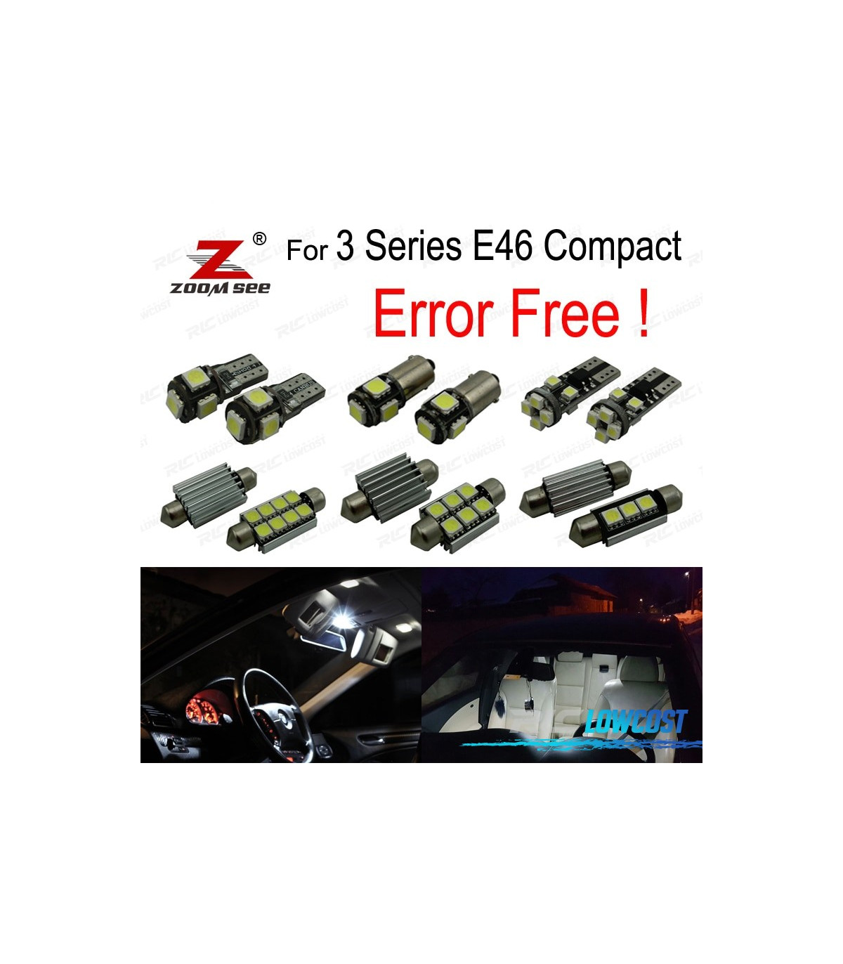 KIT 18 LAMPADE LED INTERNE BMW SERIE 3 E46 COMPACT 316TI 318TD 318TI 320TD 325TI 01-05