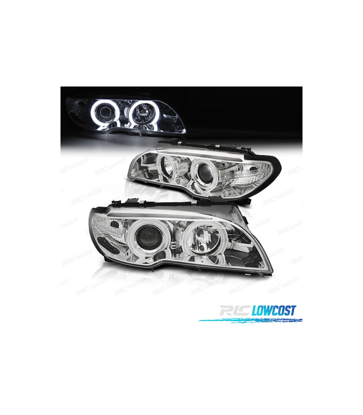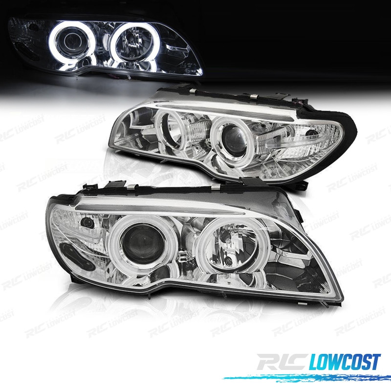 FARI BMW E46 COUPE 03-06 XENON OCCHI ANGEL CCFL FONDO CROMATO