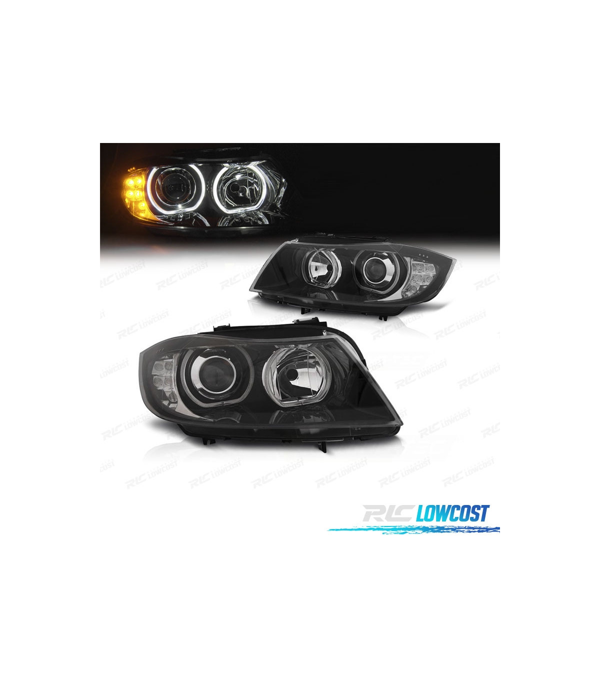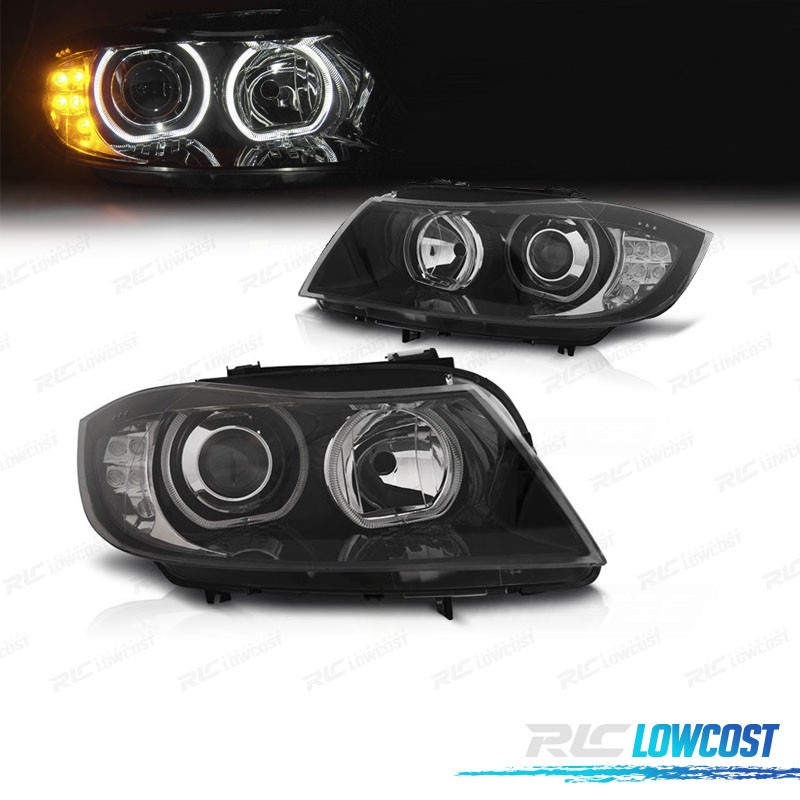 FARI BMW E90 E91 08-12 OCCHI ANGEL INTERMITTENTE A LED FONDO NERO