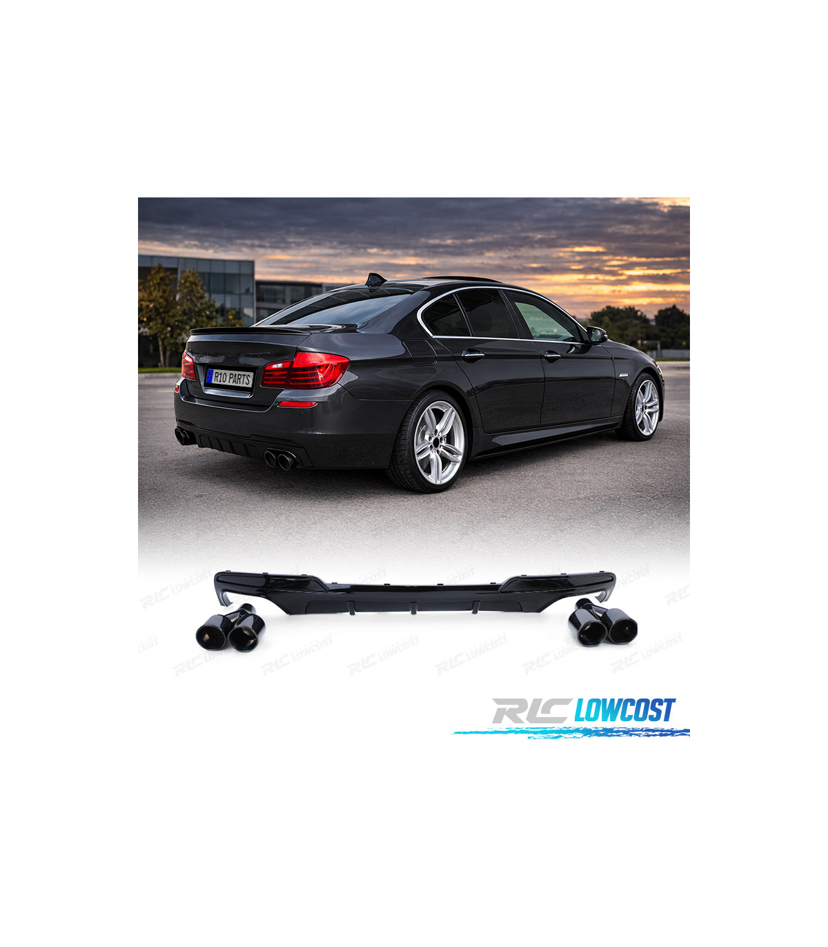 DIFFUSORE BMW F10 F11 10-17 LOOK M PERFORMANCE NERO LUCIDO + TERMINALI DI SCARICO NERO