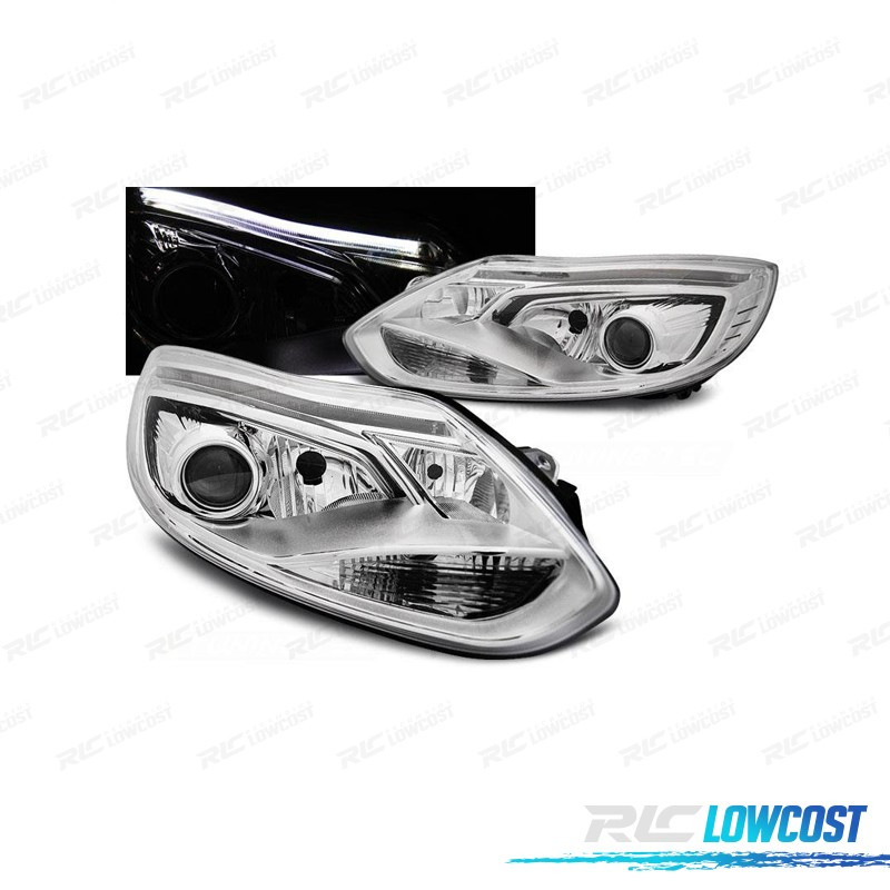 FARI FORD FOCUS MK3 11-14 TUBO LUMINOSO FONDO CROMATO